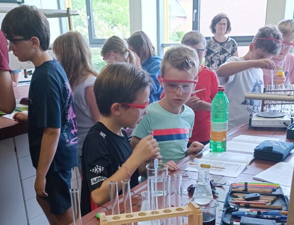 Mit 12 Kindern aus dem 4. Schuljahrgang ging es los zum Chemieworkshop am Burggymnasium.