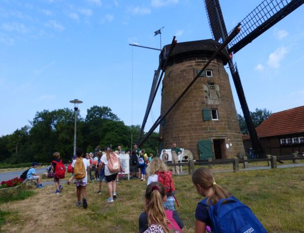 Heute sind wir mit allen dritten Klassen zur Mühle in Gildehaus gelaufen.