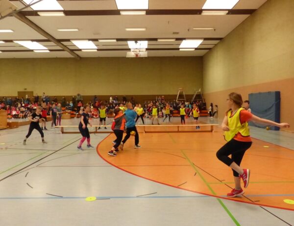 Heute durften die dritten Klassen bereits in Sportkleidung zur Schule kommen. Es stand ein Völkerballturnier an, bei dem die Kinder in Gruppen gegeneinander angetreten sind. Die Tribüne war gefüllt mit Zuschauern aus den anderen Jahrgängen, die die spannenden Spiele begeistert anfeuerten. In einem engen Finalspiel setzte sich die 3a gegen die 3c durch und durfte über den Sieg jubeln.