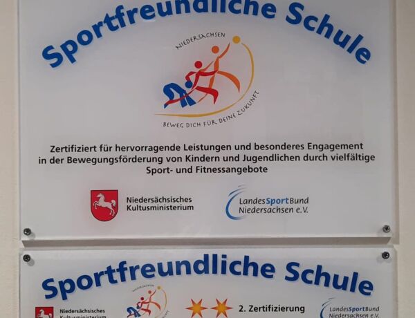 Wir haben am Freitag das Zertifikat für die Auszeichnung "Sportfreundliche Schule" verliehen bekommen. Für die Auszeichnung haben wir als Schule unterschiedliche sportliche Angebote und das Thema gesunde Ernährung in den Stundenplan integriert.reitag das Zertifikat.
