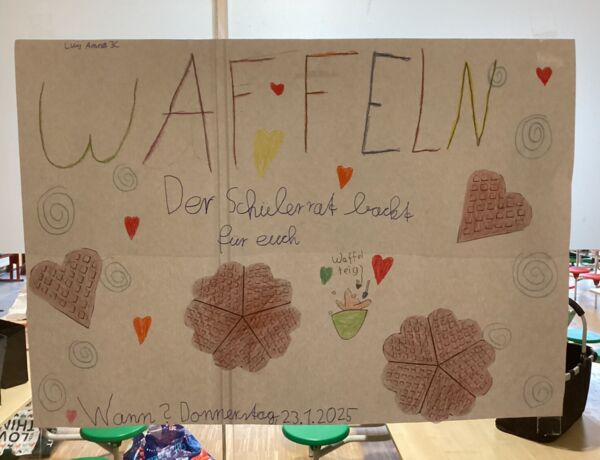 Eine besondere Aktion hat sich der Schülerrat überlegt. Nachdem das letzte Motto „Wir halten Ordnung an der Garderobe“ geschafft wurde, haben sich die Klassensprecherinnen und Klassensprecher der 3. und 4. Klasse als Belohnung überlegt, für alle Kinder der Schule Waffeln zu backen.
