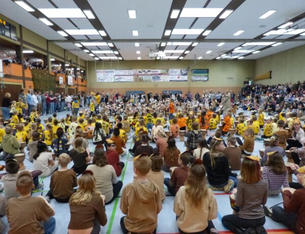 Von Trommelzauber kam ein Mann namens Fofo, er hat uns in vier Tagen Trommeln beigebracht und wir sind fast 400 Kinder. Auch den Lehrern hat es viel Spaß gemacht zu trommeln. Das Motto vom Trommelzauber heißt „Kinder an die Trommeln“. Von Dienstag bis Freitag hatten wir das Trommelprojekt. Wir haben gemeinsam eine Reise nach Tamborena gemacht, natürlich nicht in echt, aber es hat sich so angefühlt, als wären wir in Tamborena.
