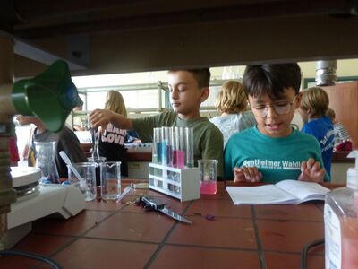 Heute durften wieder einige Kinder der vierten Klassen am Chemieworkshop im Burggymnasium teilnehmen.