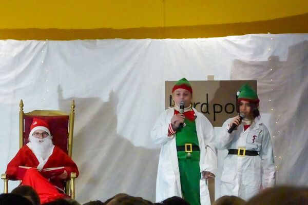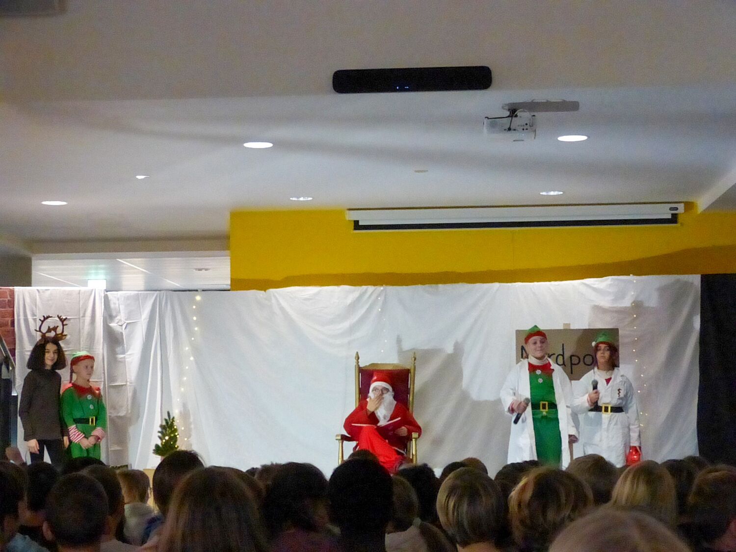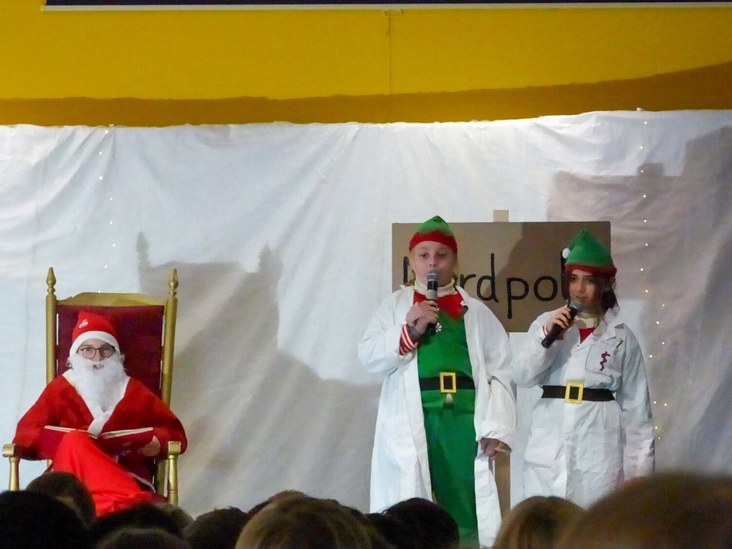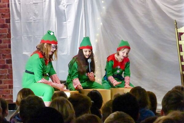 In dem Stück geht es darum, dass Rudolf wegen seiner roten Nase ausgelacht wurde. Dann hat sich ein Rentier (Dancer) verletzt, das den Schlitten des Weihnachtsmannes anführen sollte, und Rudolf musste einspringen. Doch Rudolf war verschwunden und die Wichtel mussten ihn suchen. Die Wichtel haben Rudolf in der Stadt gesucht, wo er immer ist, weil die Kinder ihn so mögen. Die Kinder hatten Rudolf zu der Zeit schon gesehen und ihn in die Schule zur Weihnachtsfeier eingeladen. Dann haben die Wichtel die Schule gesehen und wer war zwischen den ganzen Kindern? Rudolf! Die Wichtel haben sich gefreut und Rudolf gesagt, dass er mitkommen soll. Rudolf sagte „ Ja!“ und so endete das Stück. Ob es uns gefallen hat? Und wie! Wir fanden das Stück so toll, dass es zwei Zugaben gab.
