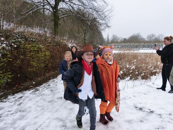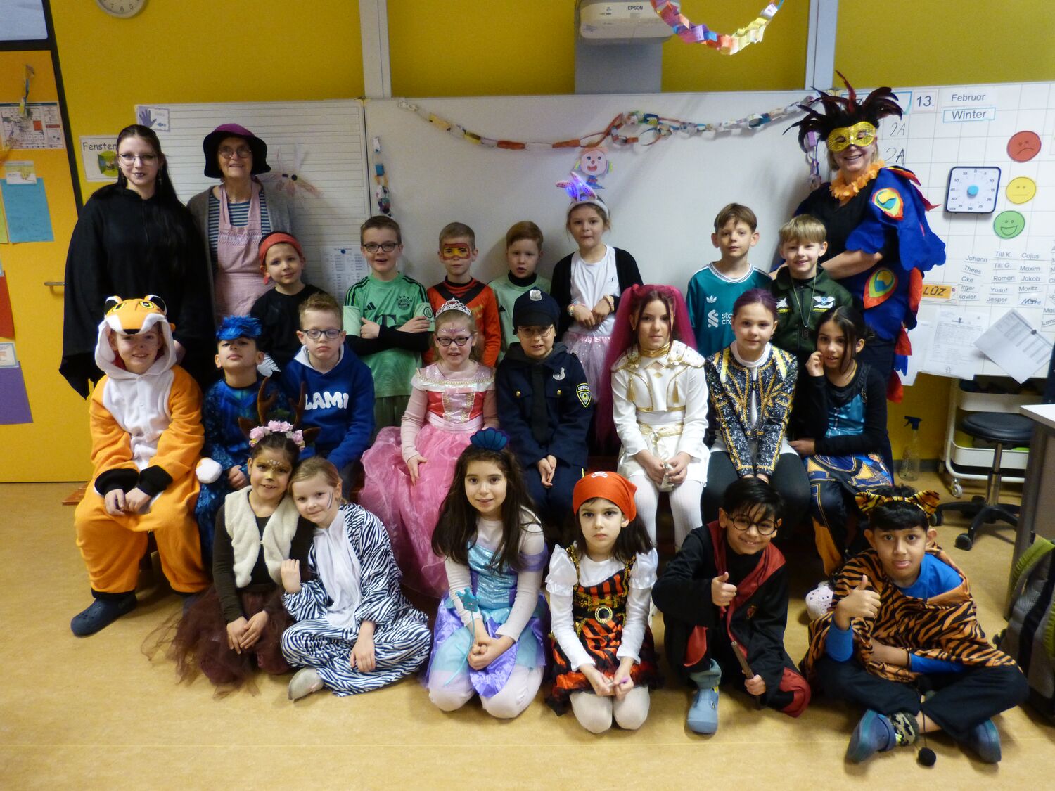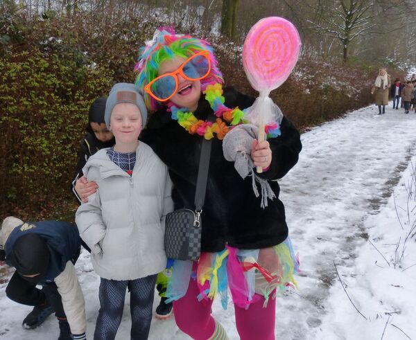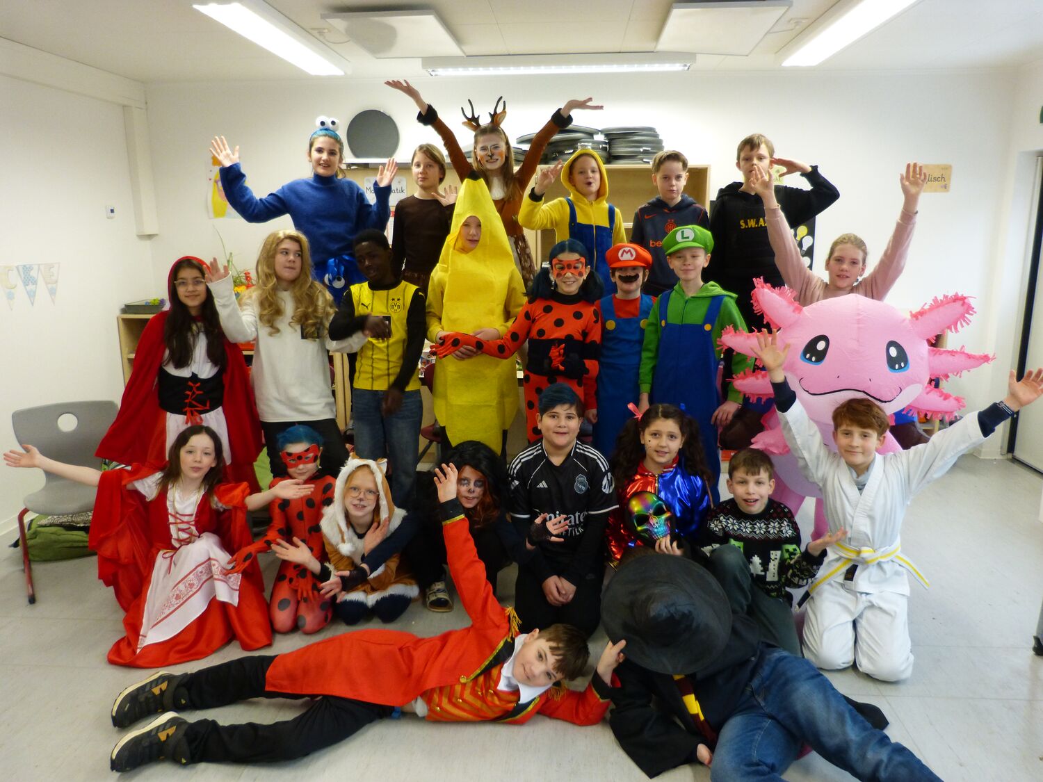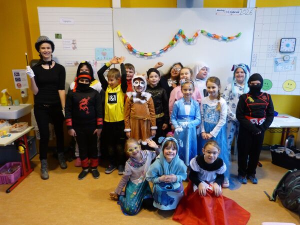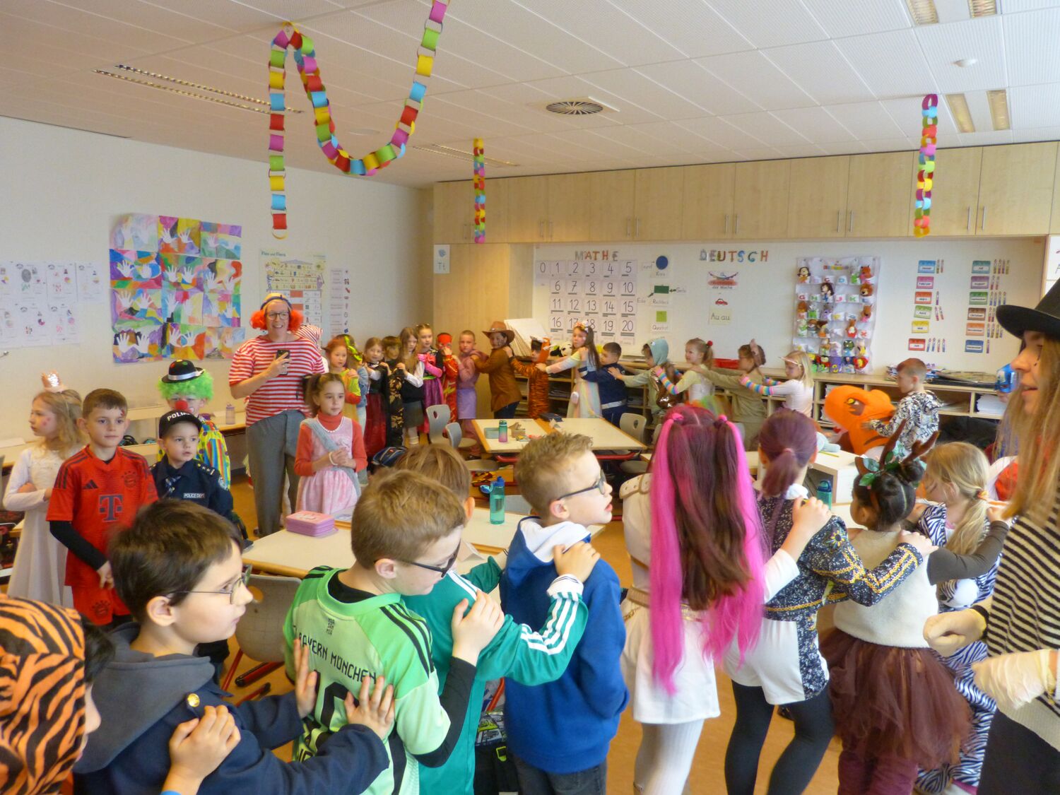 Dort wurde getanzt, gelacht und gespielt. Nach einer Polonaise durch die Schule tanzten alle Kinder ausgelassen in der Aula. Im Anschluss wurden die Jacken übergezogen und Tüten zum Süßigkeiten sammeln bereit gemacht, denn wie jedes Jahr machten wir mit der gesamten Schule einen Rundgang durch Bad Bentheim. Der Streckenplan wurde im Vorhinein bekannt gegeben, sodass viele Eltern an den Wegen entlang Süßigkeiten warfen und die Kostüme der Kinder bestaunen konnten.