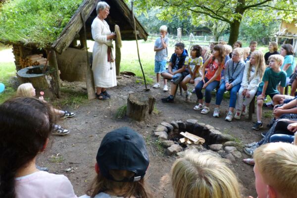 Nach der ersten Nacht war bei vielen Kindern das anfängliche Heimweh überwunden und es konnte voller Begeisterung den Erzählungen bei einer Führung durch den Bronzezeithof gelauscht werden. Im Verlauf des Tages erkundeten die Kinder Uelsen mithilfe einer Stadtrallye und Rätselfragen entlang des Weges. Diesen aktionsreichen Tag rundete eine Kinderdisco mit Musik und Tanz ab und alle fielen müde ins Bett.