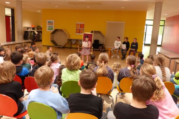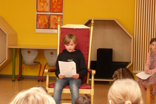 Wer dabei welchen Teil der Geschichte lesen durfte, wurde im Vorfeld ausgelost. Die Kinder bekamen ihren Teil, mit dem Hinweis ihn lesen zu üben, mit nach Hause und durften heute ihre Fähigkeiten als besonders talentierte Vorlesende beweisen. Sie lasen spannungsvoll, mit verstellten Stimmen vor und stellten immer wieder Blickkontakt zu ihrem Publikum her.