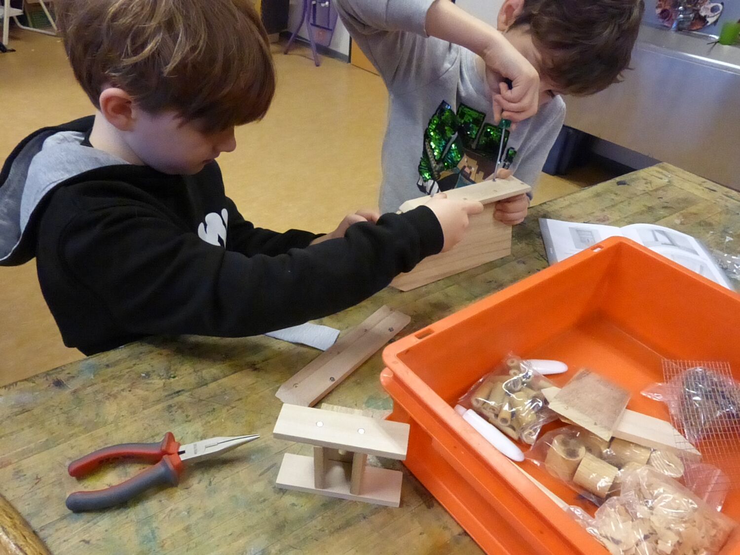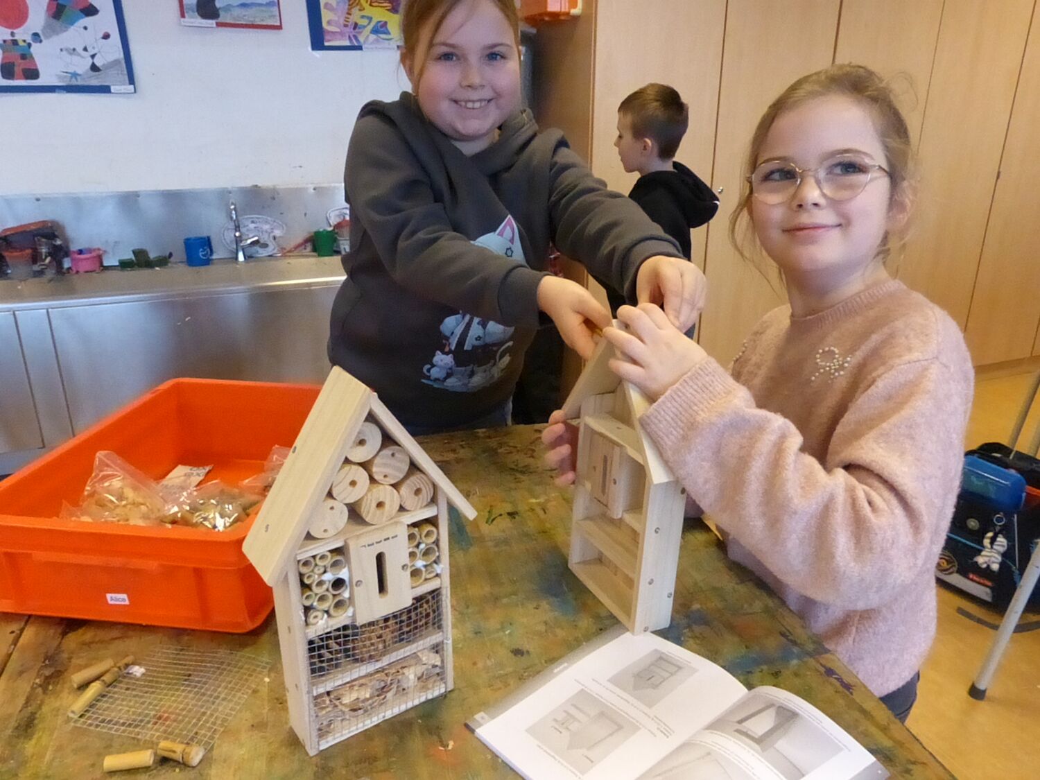 Beim gemeinsamen Bauen lernten die Schülerinnen und Schüler nicht nur den Umgang mit Werkzeugen, sondern auch, warum Insekten für unsere Umwelt so wichtig sind und wie wir sie schützen können. Der praktische Einsatz machte das Thema Naturschutz für die Kinder lebendig und greifbar.